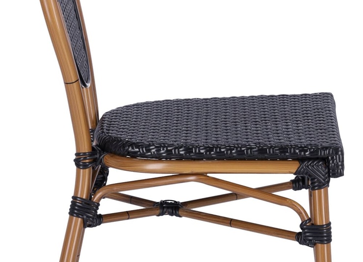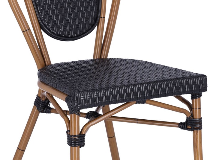 The stackable Marco model delivers Parisian brasserie flair at first glance – with its characteristic shape and harmonious color scheme, it immediately reads as a true café statement in hospitality settings. Designed for professional use, it impresses with strong value for money and materials that perform reliably both outdoors and indoors: rattan-look aluminum meets hand-woven nylon mesh. The weave does not absorb moisture, dries quickly and remains pleasantly easy to maintain. UV-resistant, weatherproof components ensure that Marco continues to look good even in sun, rain and high-traffic environments. Whether as a chair with or without armrests, a 2-seater bench at dining table height, an armchair or a 2-seater element at lounge height – Marco adapts flexibly to your concept. And because all versions are stackable, handling stays just as relaxed as the look.- Parisian flair: Brasserie look that attracts guests and keeps them seated longer