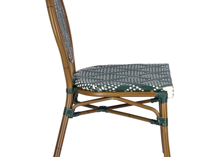The stackable Marco model delivers Parisian brasserie flair at first glance – with its characteristic shape and harmonious color scheme, it immediately reads as a true café statement in hospitality settings. Designed for professional use, it impresses with strong value for money and materials that perform reliably both outdoors and indoors: rattan-look aluminum meets hand-woven nylon mesh. The weave does not absorb moisture, dries quickly and remains pleasantly easy to maintain. UV-resistant, weatherproof components ensure that Marco continues to look good even in sun, rain and high-traffic environments. Whether as a chair with or without armrests, a 2-seater bench at dining table height, an armchair or a 2-seater element at lounge height – Marco adapts flexibly to your concept. And because all versions are stackable, handling stays just as relaxed as the look.- Parisian flair: Brasserie look that attracts guests and keeps them seated longer